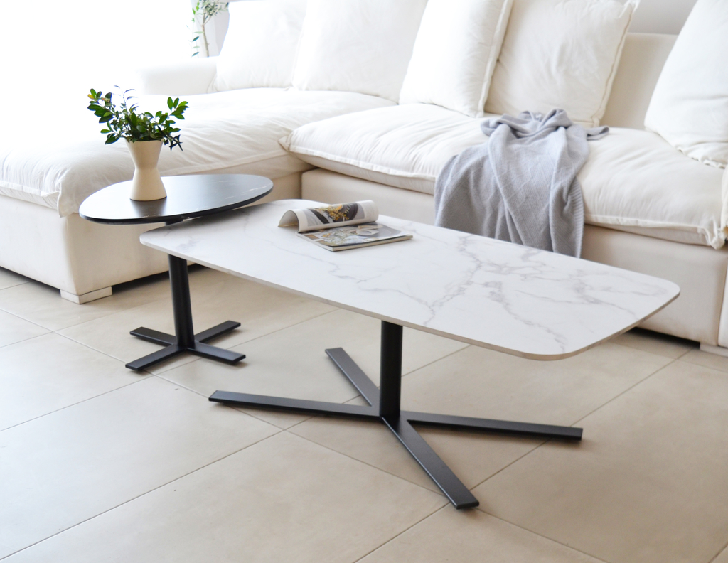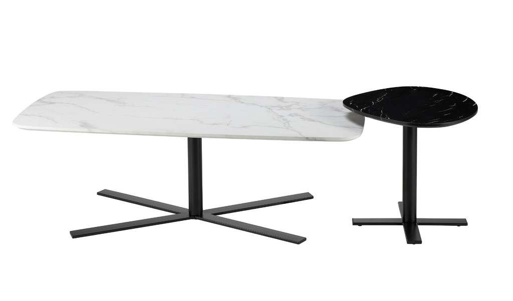 Tablero de fibras de madera con laminado simil mármol.