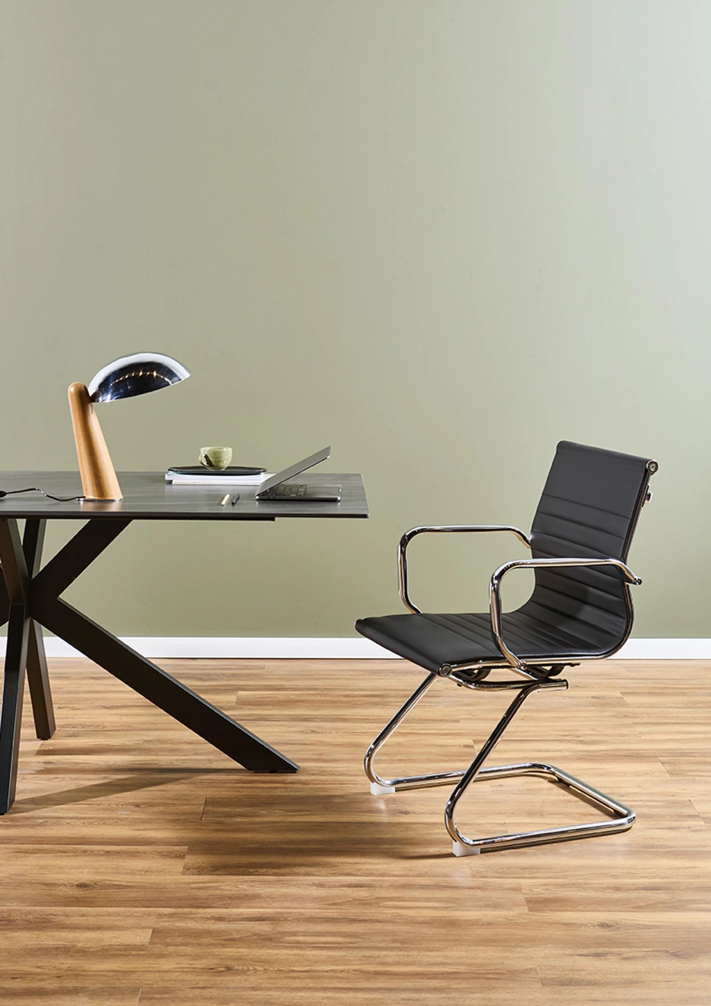 Este sillón ejecutivo tiene como premisa arquitectónica el equilibrio. Entre la ergonomía y el diseño contemporáneo se ubica esta pieza única hecha a mano, cuya elegancia se aprecia en sus líneas firmes pero sutiles.